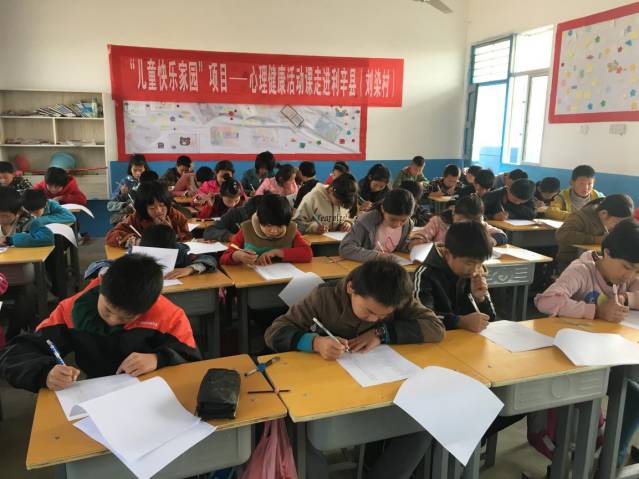 与此同时在刘染小学的五年一班,陈雅妮、刘蕾两位老师带着孩子们开展了以心理测评、心理疏导为主题的《小学生心理健康》活动课,旨在引导学生树立正确的自我认知意识和团结协作意识,进一步推动留守儿童心理健康关爱服务工作的开展。